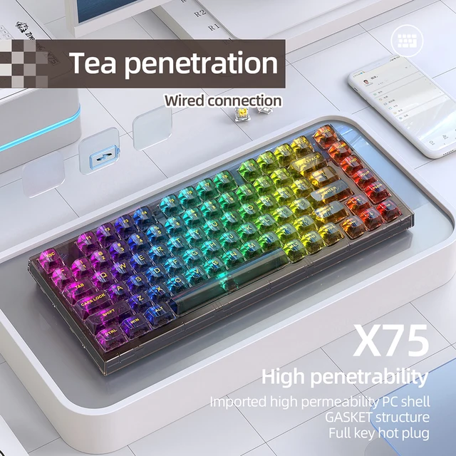 82 Keys Gamer Mechanical Keyboard 3 Modes Mechanical Hotswap Keyboard Bluetooth-compatible 2.4G RGB Light Hot Swap for Laptop PC